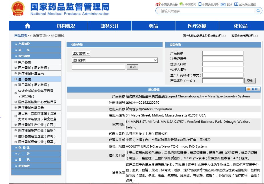 臨床質(zhì)譜又添新成員—沃特世TQ-S micro獲批醫(yī)療器械注冊證